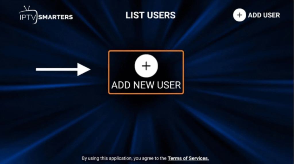 Step 6: Launch IPTV Smarters, and you will get the screen below, click on add new user