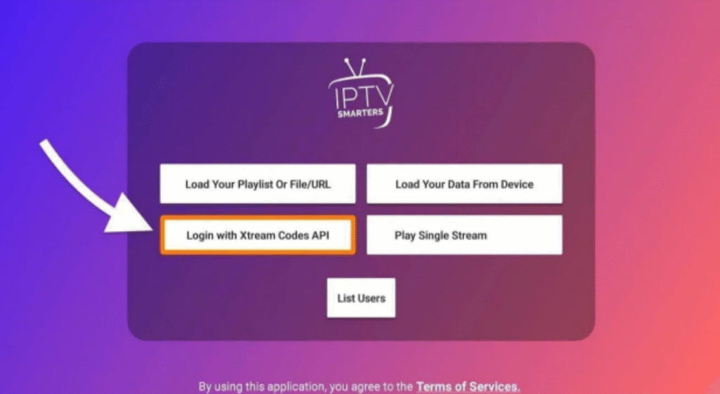 Step 3: Open IPTV Smarters PRO and click on “Login with Xtream Codes API”