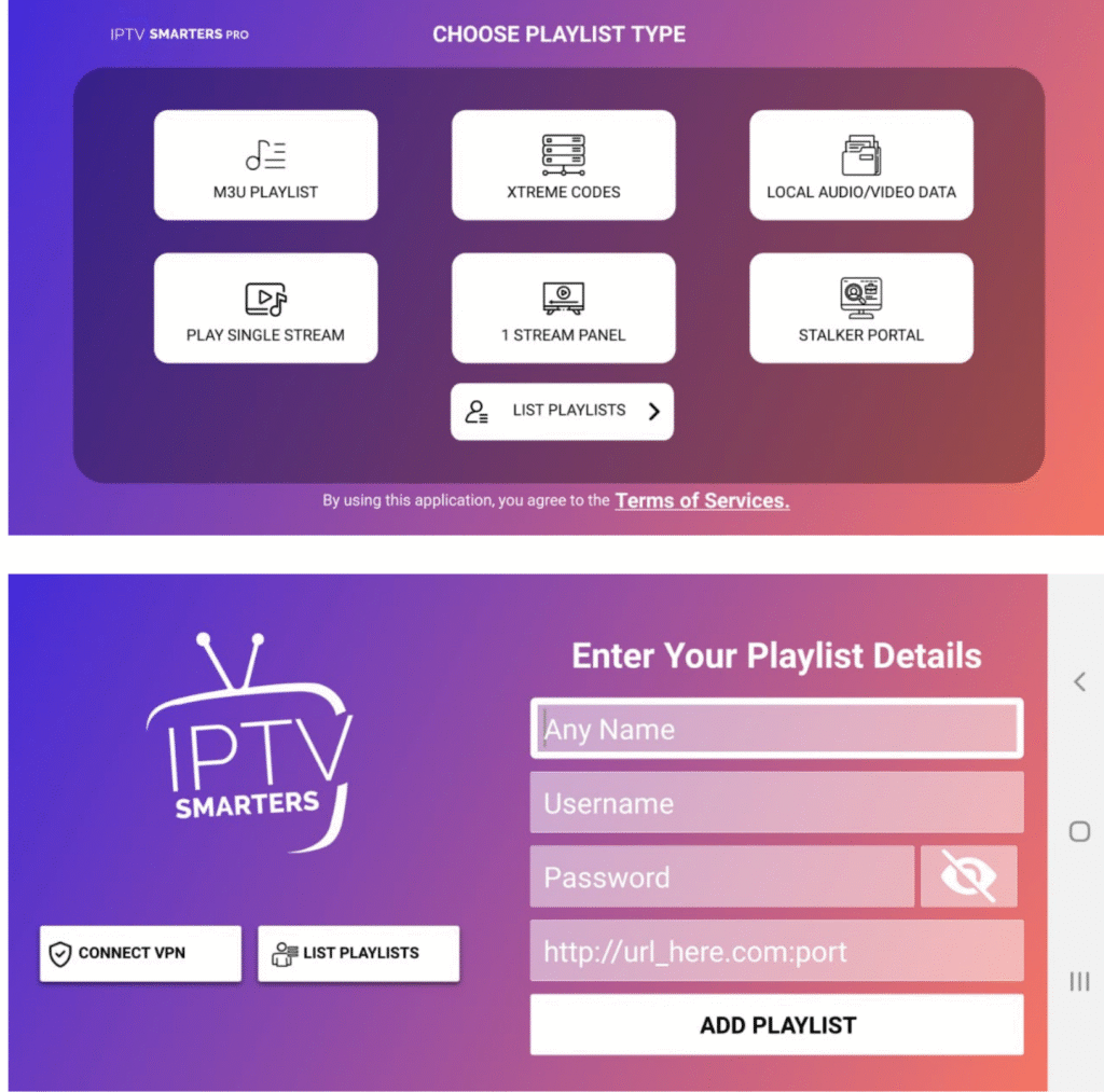 Step 5: Once installed, Open the app, Accept the terms, proceed with the Xtream Codes API credentials, then fill the login form with the credentials found in your email under “Xtream Codes” ( Contact IPTVSAFRICA to get you Xtream codes)